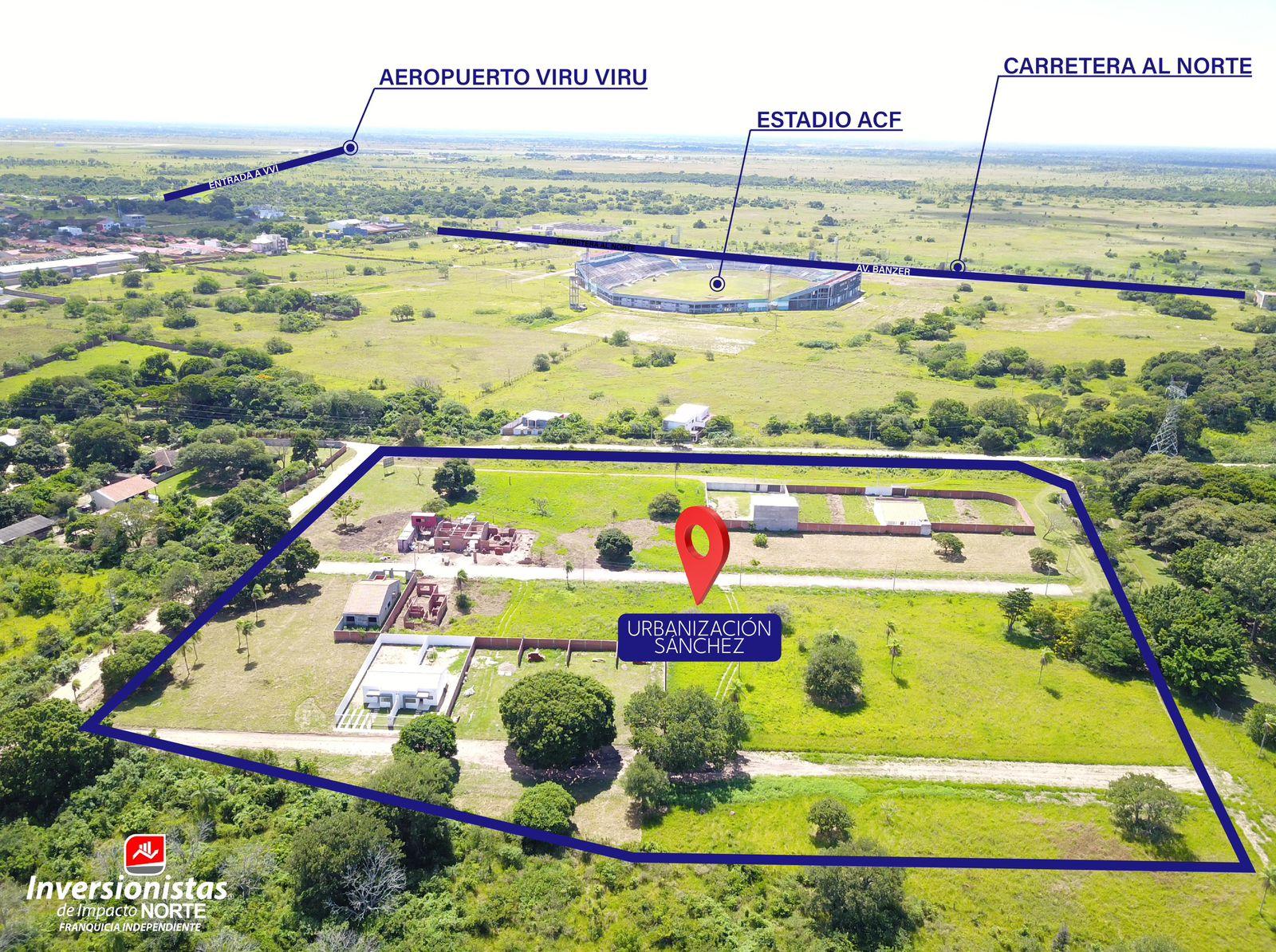 Descripción: LOTES DE TERRENO DESDE 210 M2 A 22050 $US. A SOLO 400 MTS DE LA CARRETERA AL NORTE FRENTE AL AEROPUERTO VIRU VIRU.